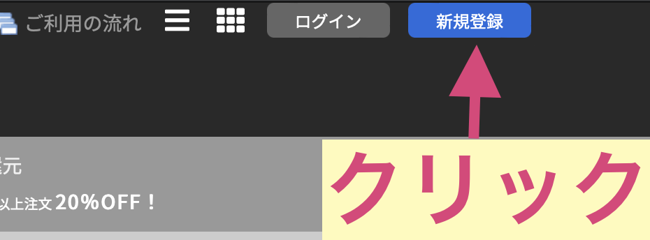まずは中古ドメイン販売屋さんにアクセスしてトップページ右上にある【新規登録】をクリックしましょう〜!