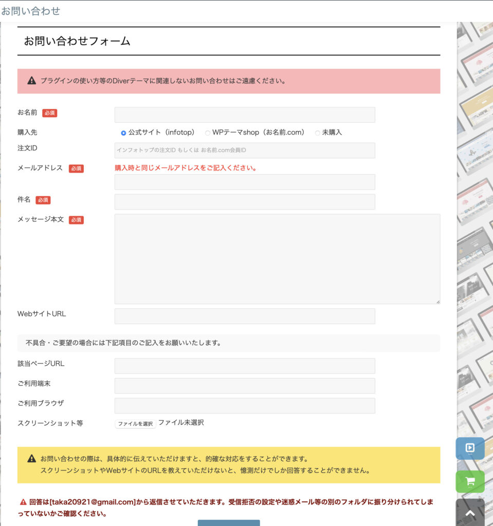 DIVERを購入すればサポートは無料無制限で受けられますし、また親切丁寧な対応をしてくれるので安心して問い合わせ可能です💪🤩